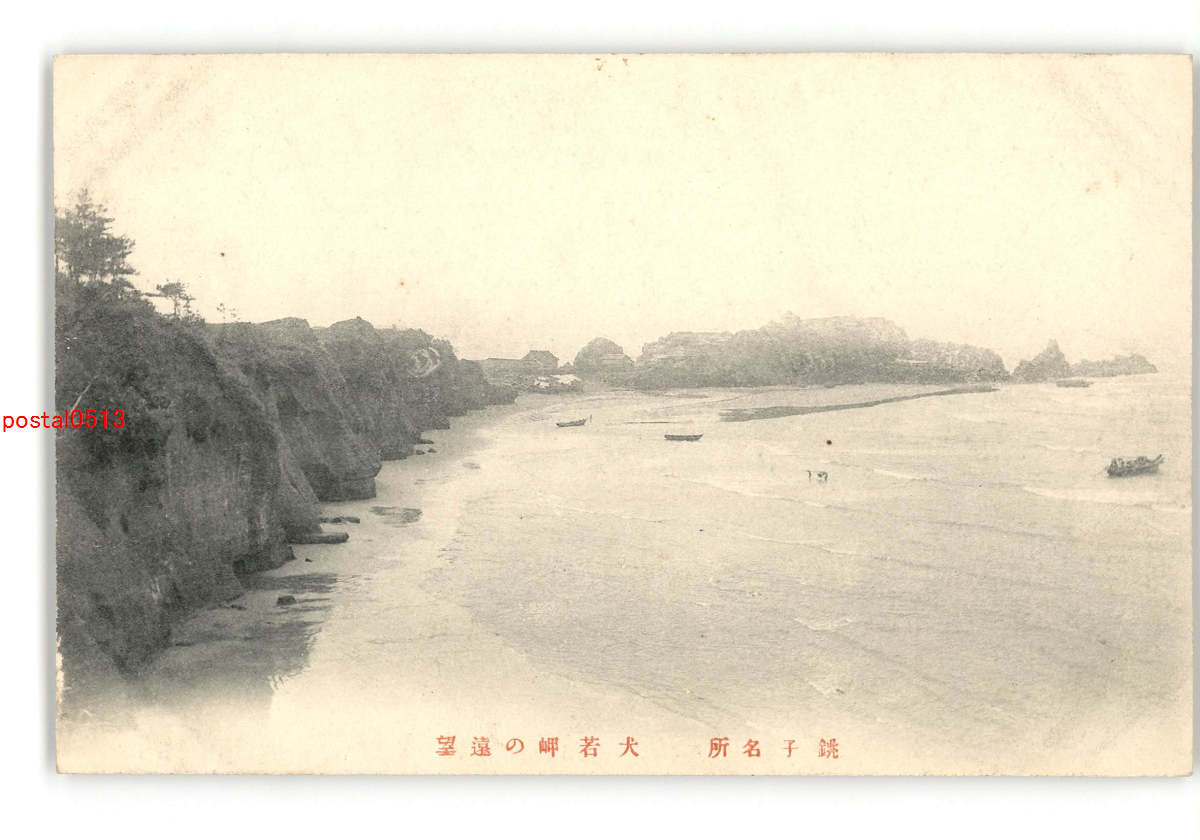 千葉 銚子名所 犬若岬の遠望 *アルバム跡傷み有り