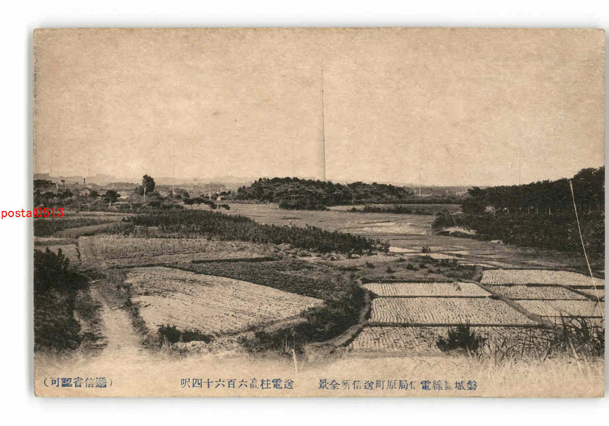 福島 磐城無線電信局原町送信所全景 送電柱高664呎 *折れ有り *傷み有り