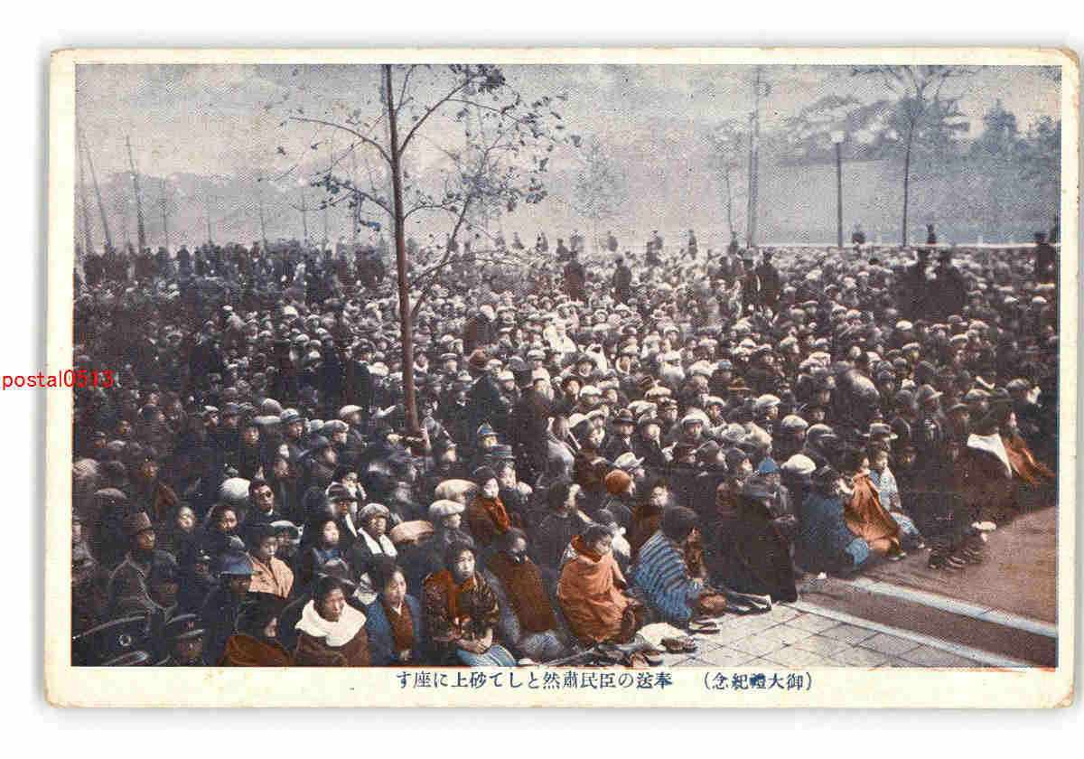 御大禮紀念 奉送の臣民粛然として砂上に座す *折れ有り *傷み有り
