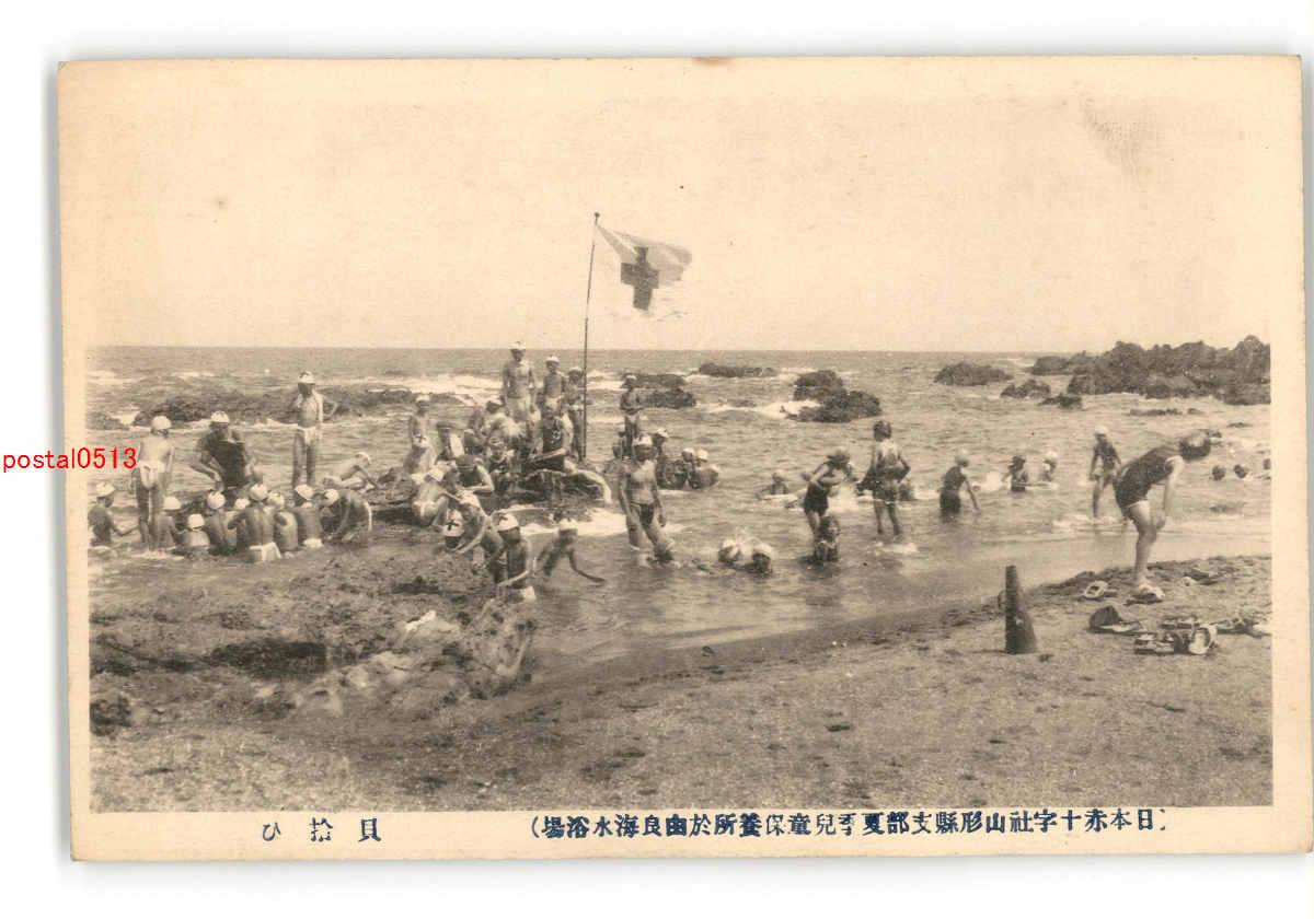 山形 日本赤十字社山形県支部夏季児童保養所於由良海水浴場 貝拾ひ *折れ有り *傷み有り
