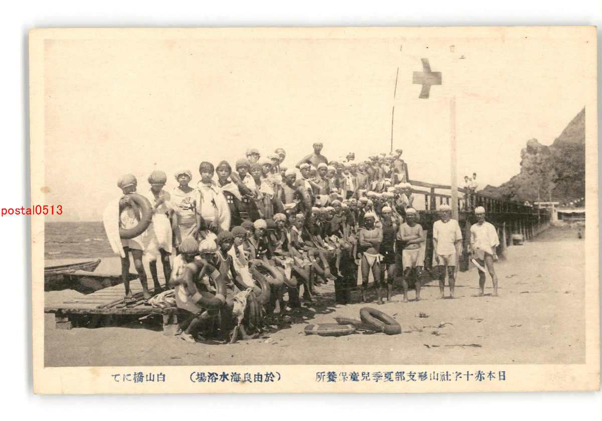 山形 日本赤十字社山形支部夏季児童保養所於由良海水浴場 白山橋にて *折れ有り *傷み有り
