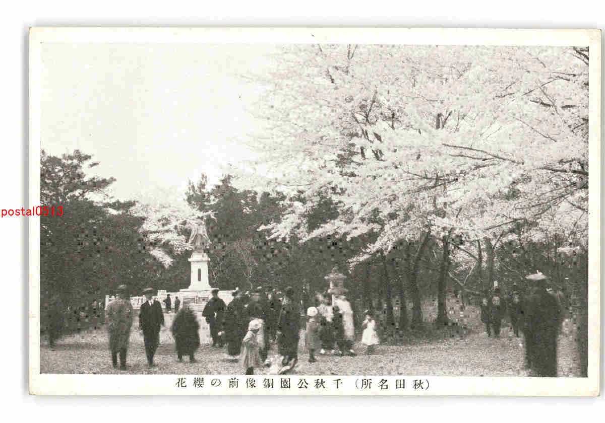 秋田 秋田名所 千秋公園銅像前の桜花 *傷み有り