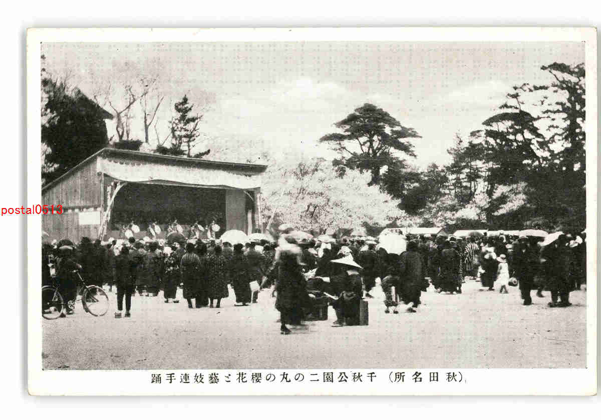秋田 秋田名所 千秋公園二の丸の桜花と芸妓連手踊 *傷み有り