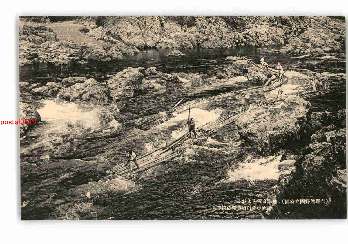 吉野熊野国立公園 飛沫白雪とまがふ 瀞峡中の白眉奥瀞の筏下し *傷み有り