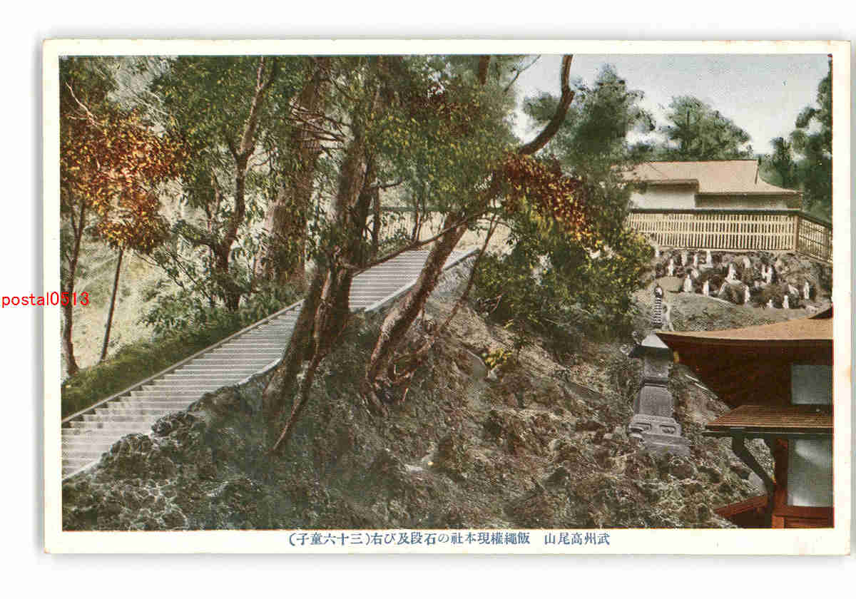 東京 武州高尾山 飯縄権現本社の石段及び右 36童子 *傷み有り