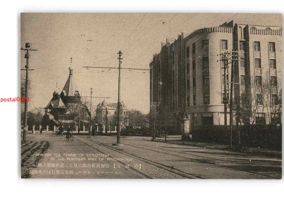 満州 哈爾浜 哈爾浜新市街ニューハルビンホテル 彼方に中央寺院 *傷み有り