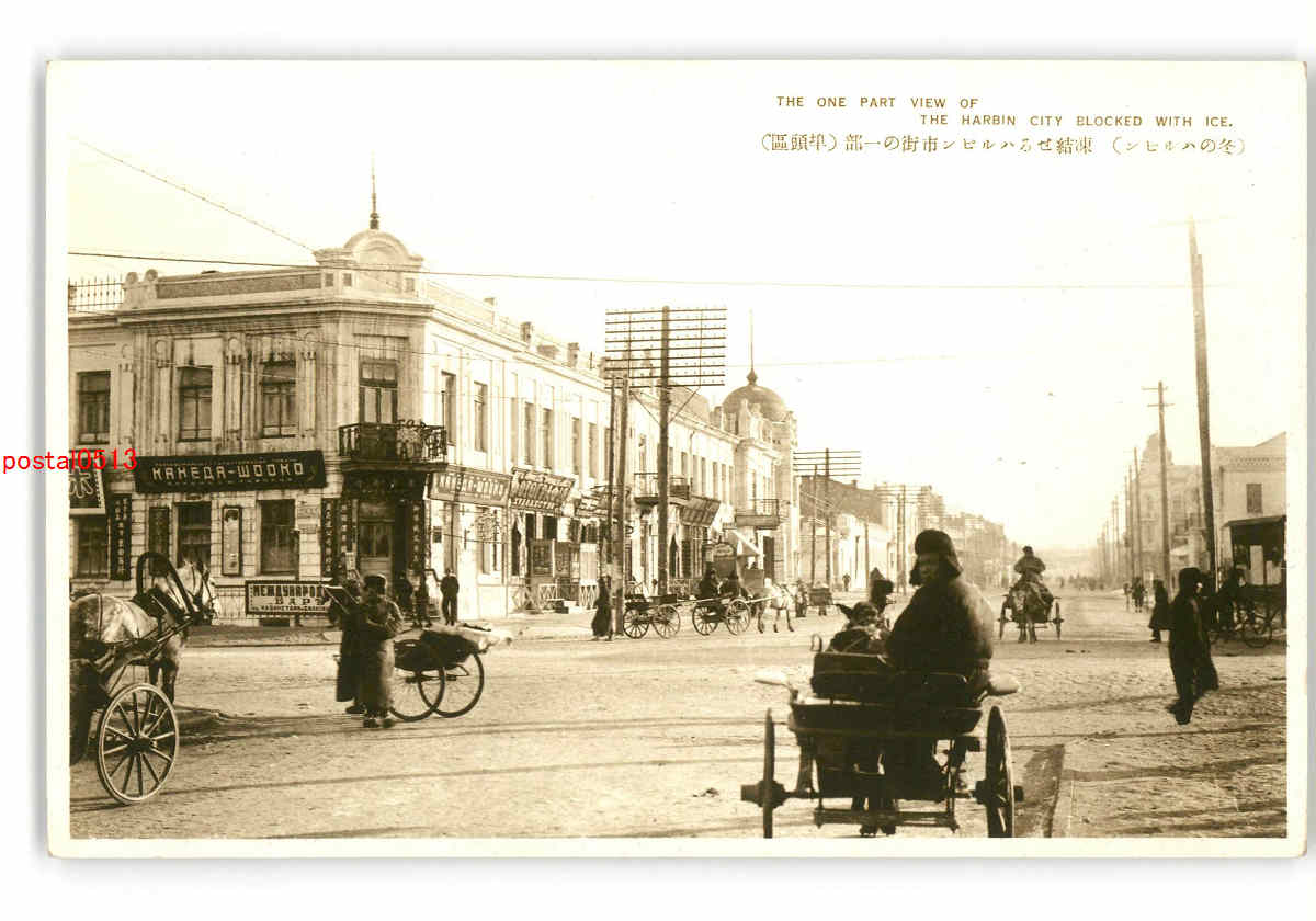 満州 冬のハルビン 凍結せるハルビン市街の一部 埠頭区 *傷み有り