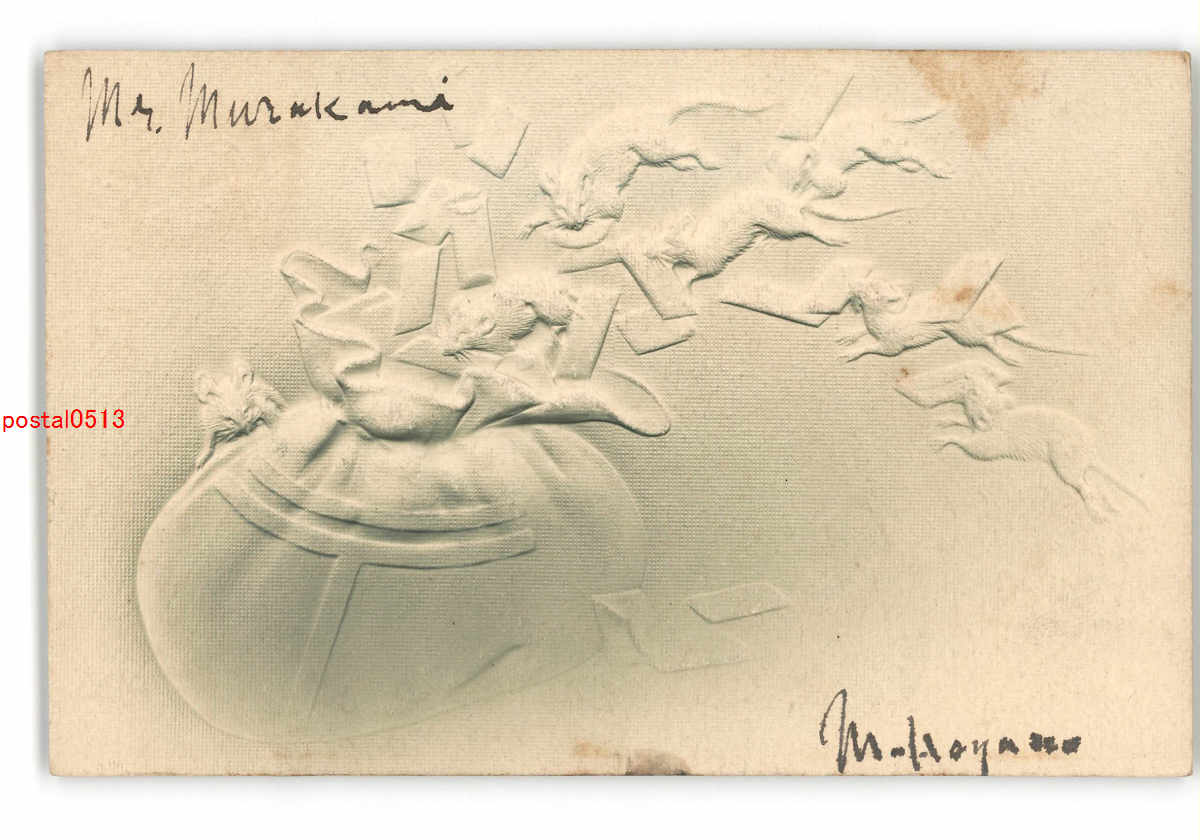 年賀状アート絵葉書 鼠エンボス *傷み有り