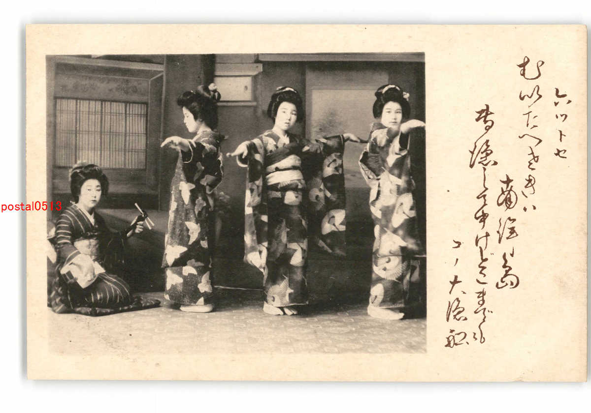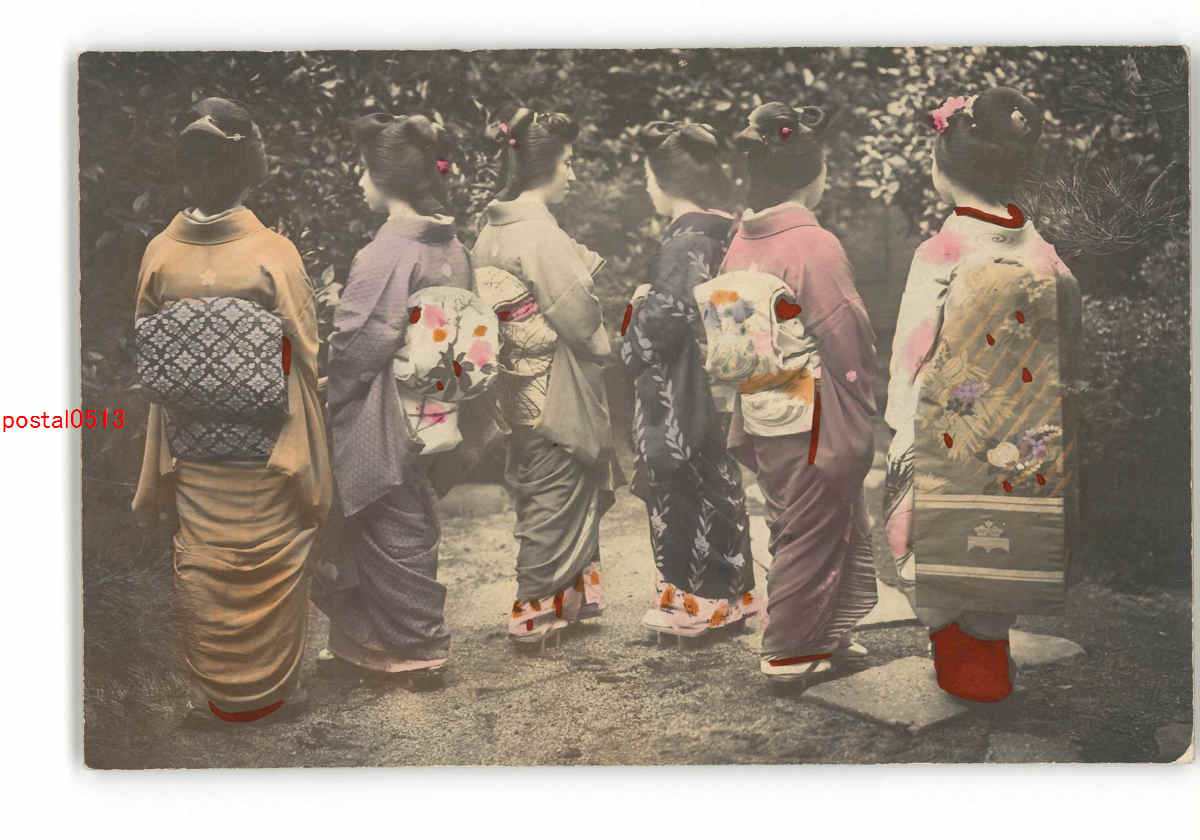 和服女性達の後ろ姿 手彩色 *傷み有り