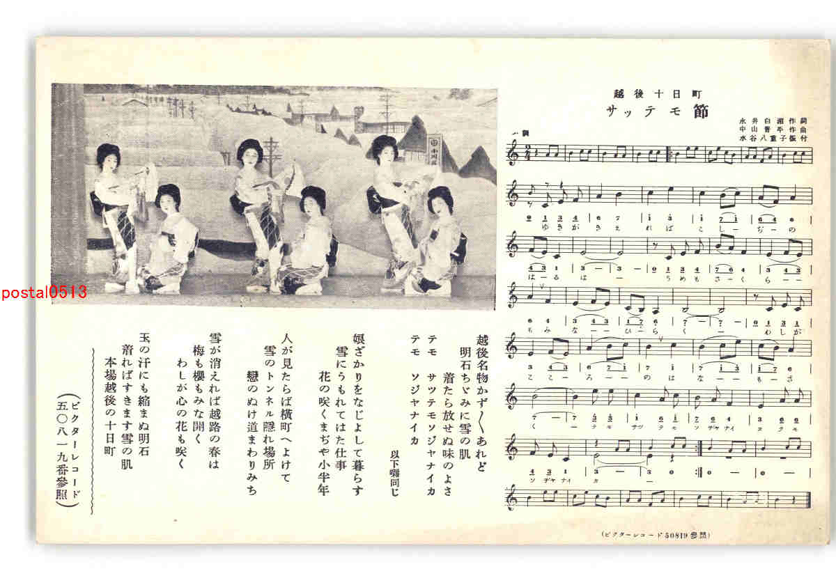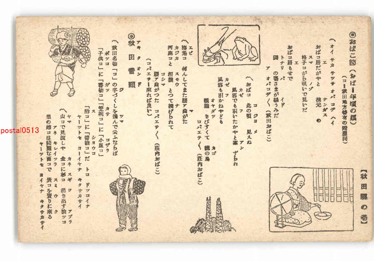 秋田 おばこ節 秋田音頭 歌詞とアート絵葉書 *傷み有り