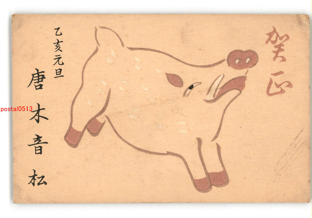 趣味人絵葉書 木版アート 唐木音松 豬年賀状 *傷み有り