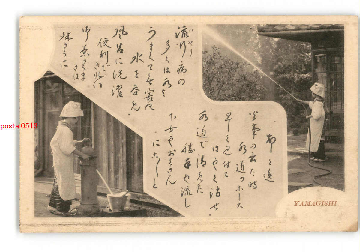女性の水仕事 ホースで散水 *傷み有り