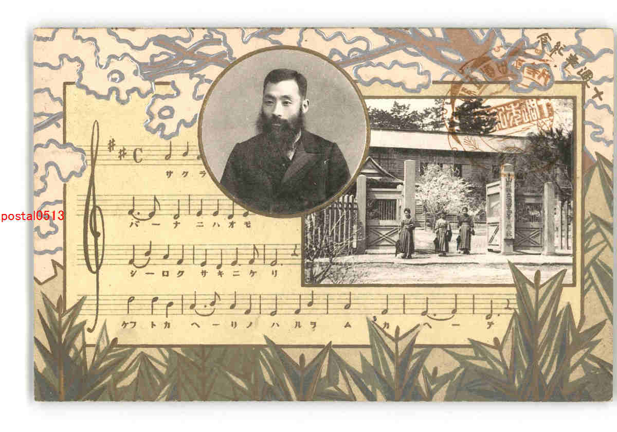 資料絵葉書 校歌と紙幣 *傷み有り