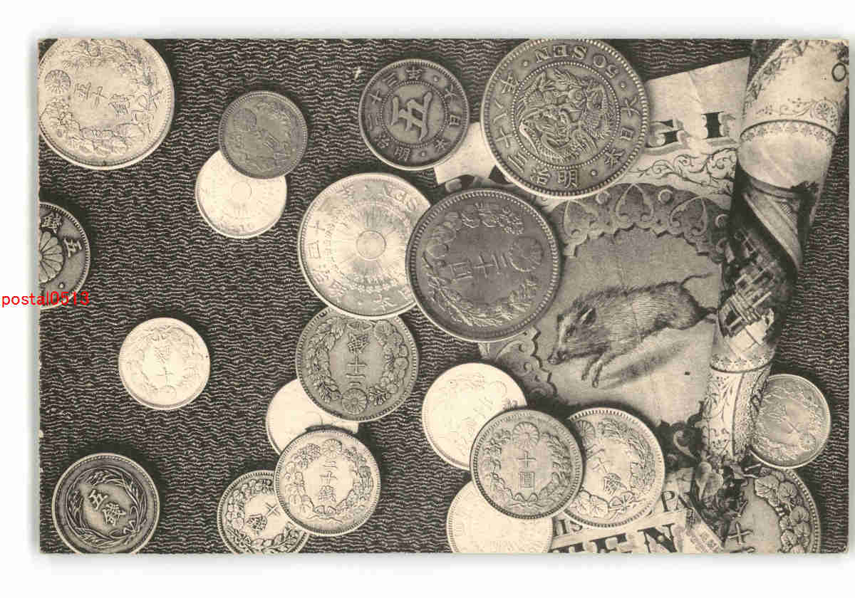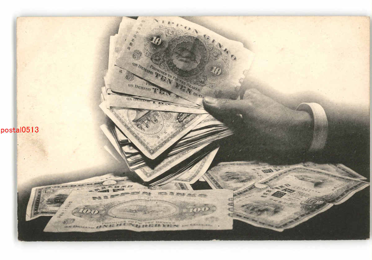 資料絵葉書 紙幣を持つ手 *傷み有り