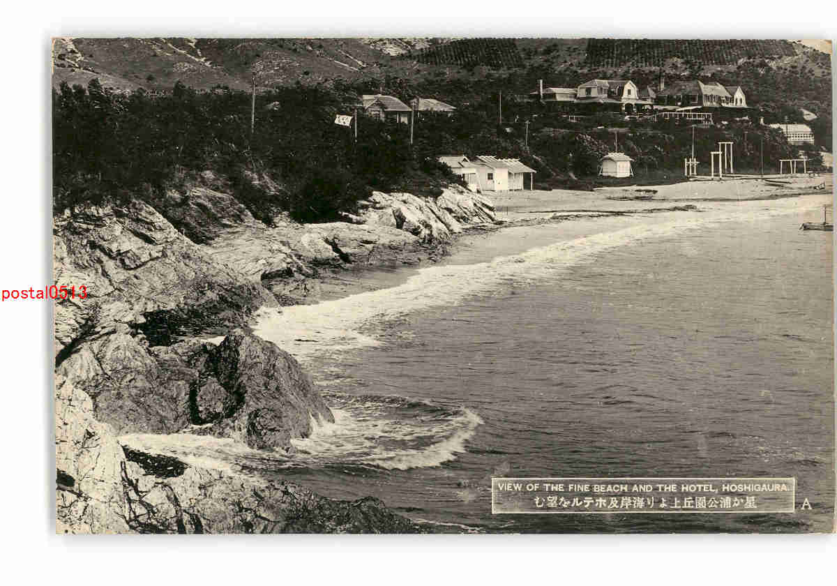 満州 星か浦公園丘上より海岸及ホテルを望む *傷み有り