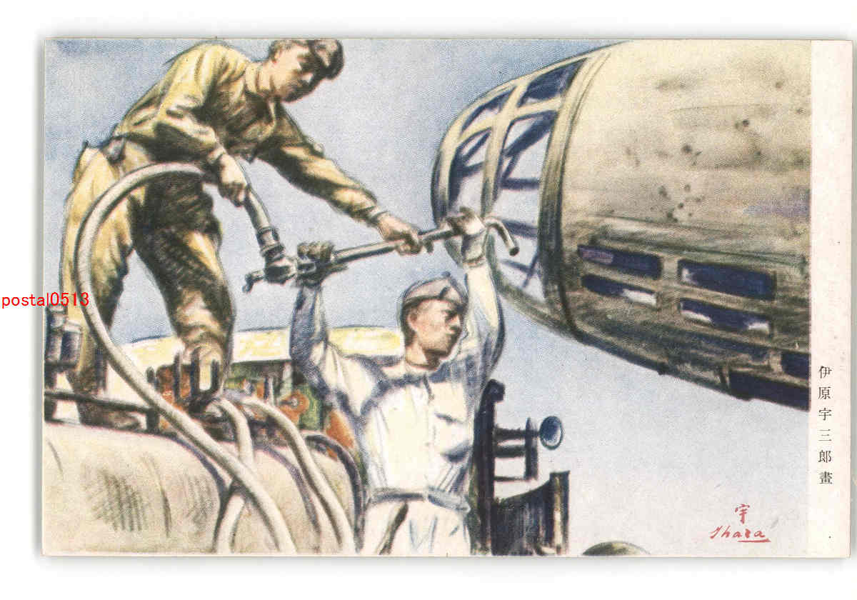 伊原宇三郎 飛行機整備 アート絵葉書 *傷み有り