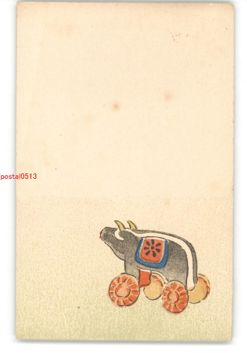 牛のおもちゃ? 木版アート絵葉書 *傷み有り