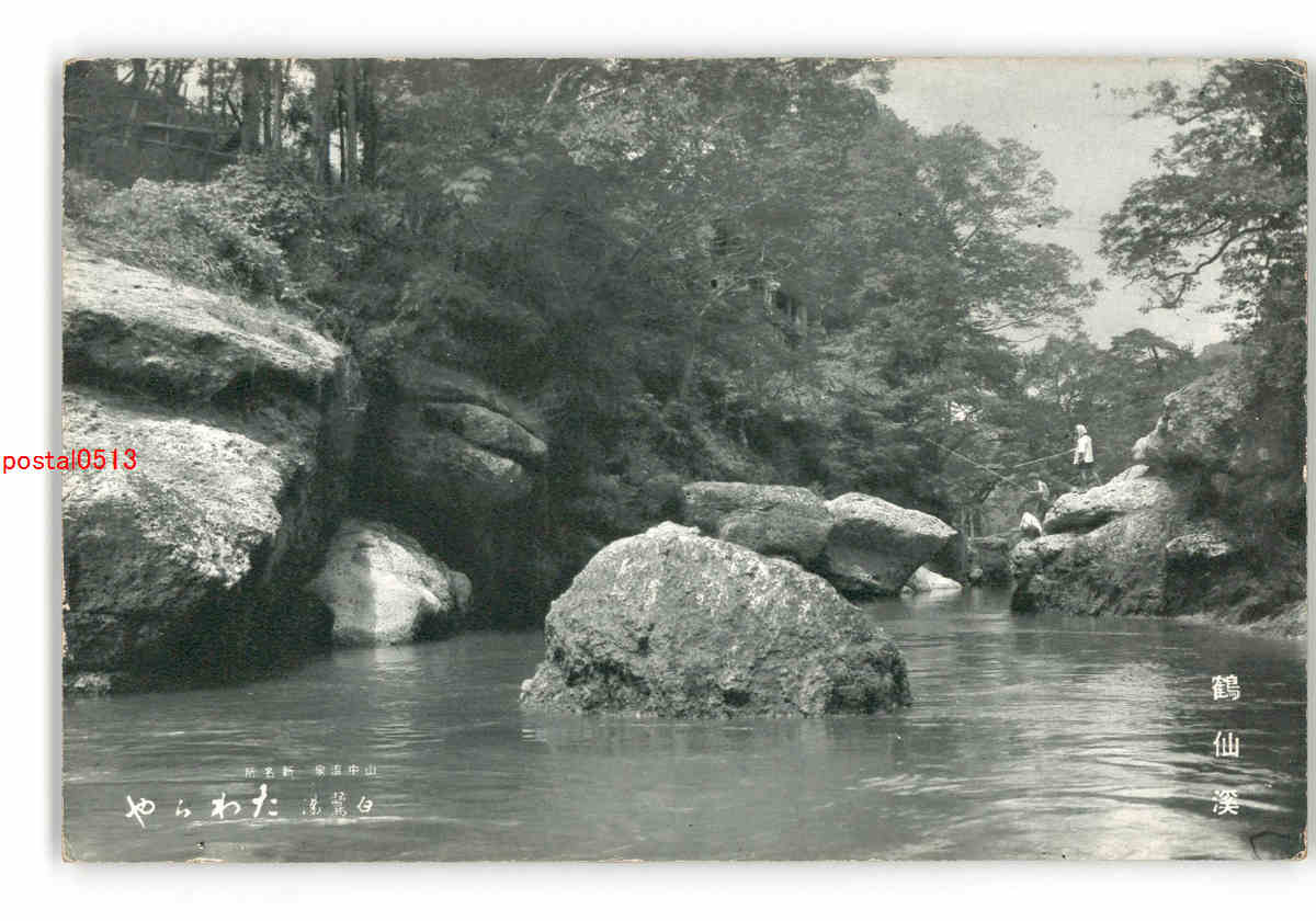 石川 山中温泉 鶴仙渓 釣り人 *傷み有り