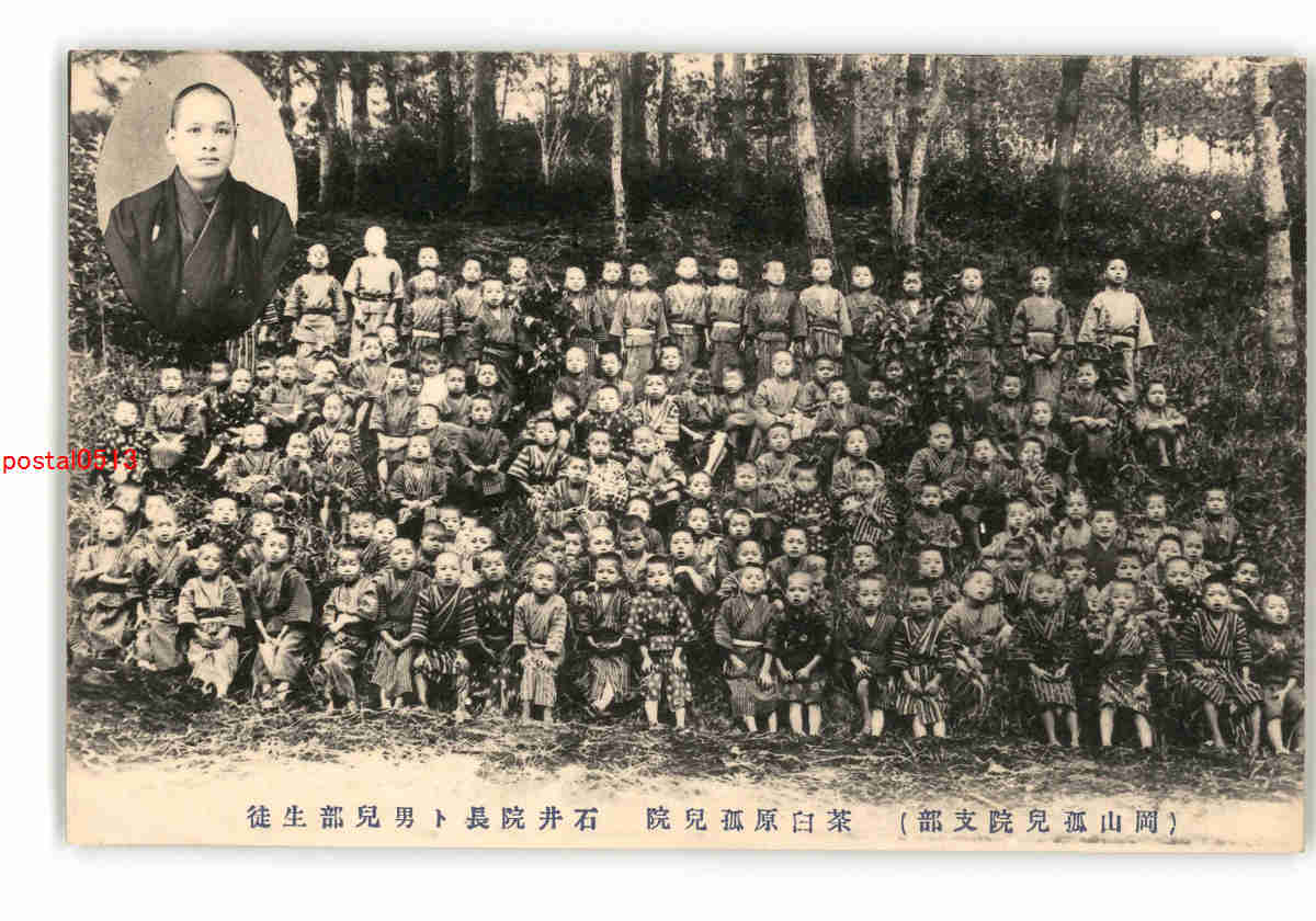 岡山 岡山孤児院支部 茶臼原孤児院 石井院長と男児部生徒 *剥離有り *傷み有り