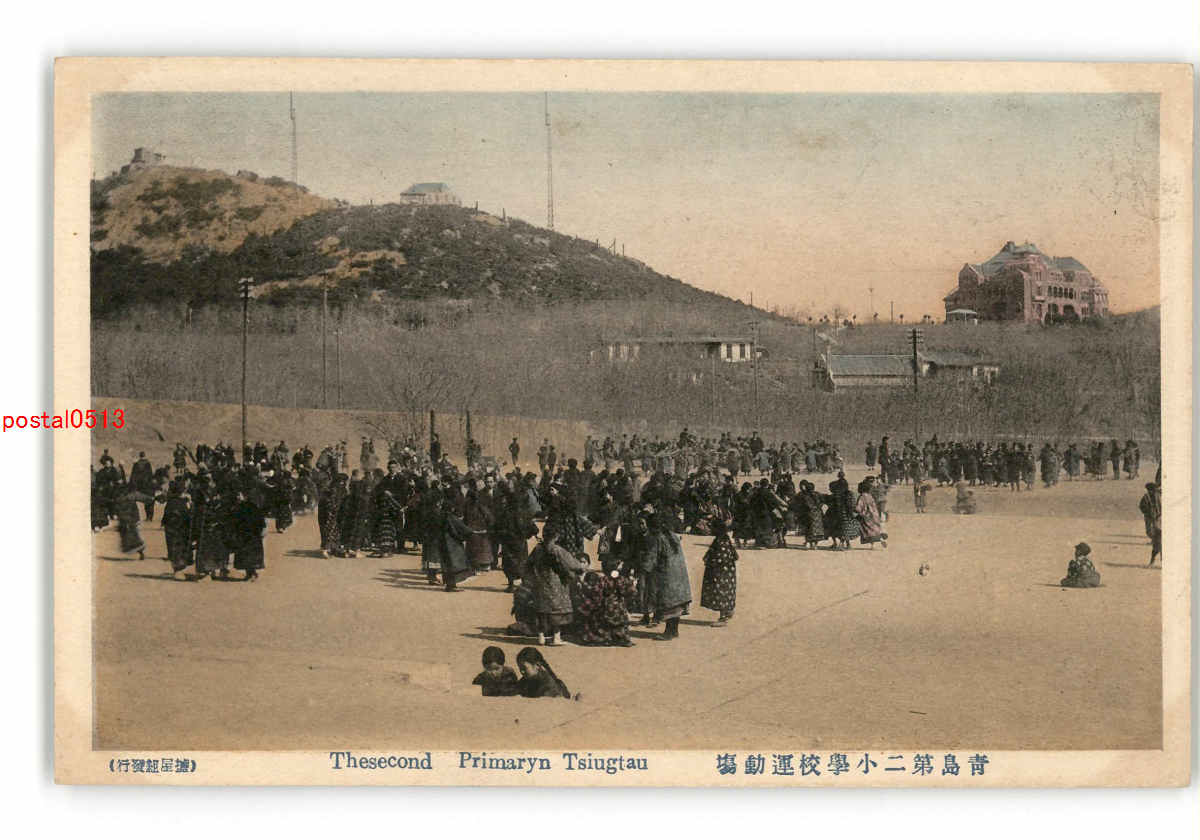 満州 手彩色 青島第二小学校運動場 *傷み有り