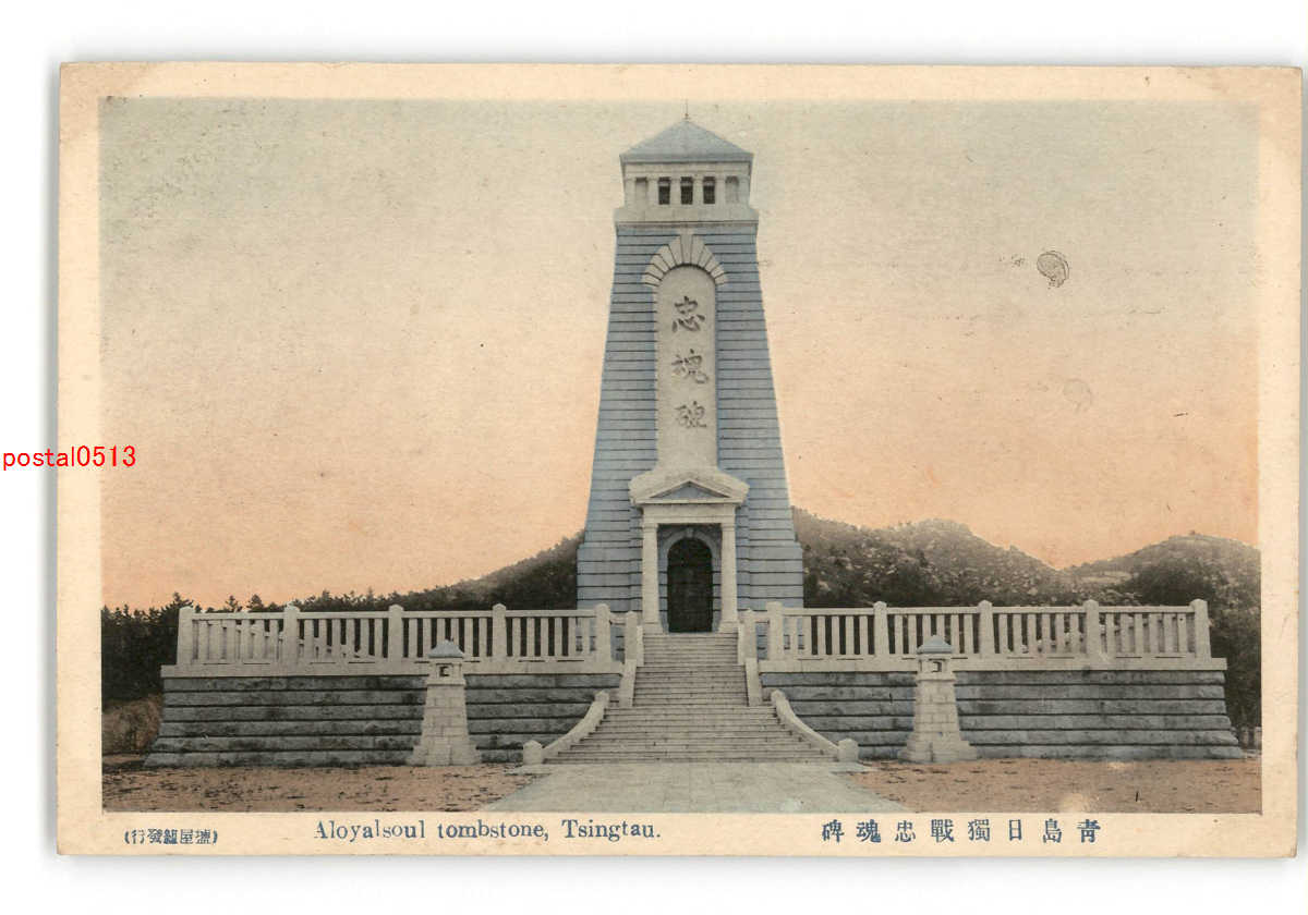 満州 手彩色 青島日独戦忠魂碑 *傷み有り