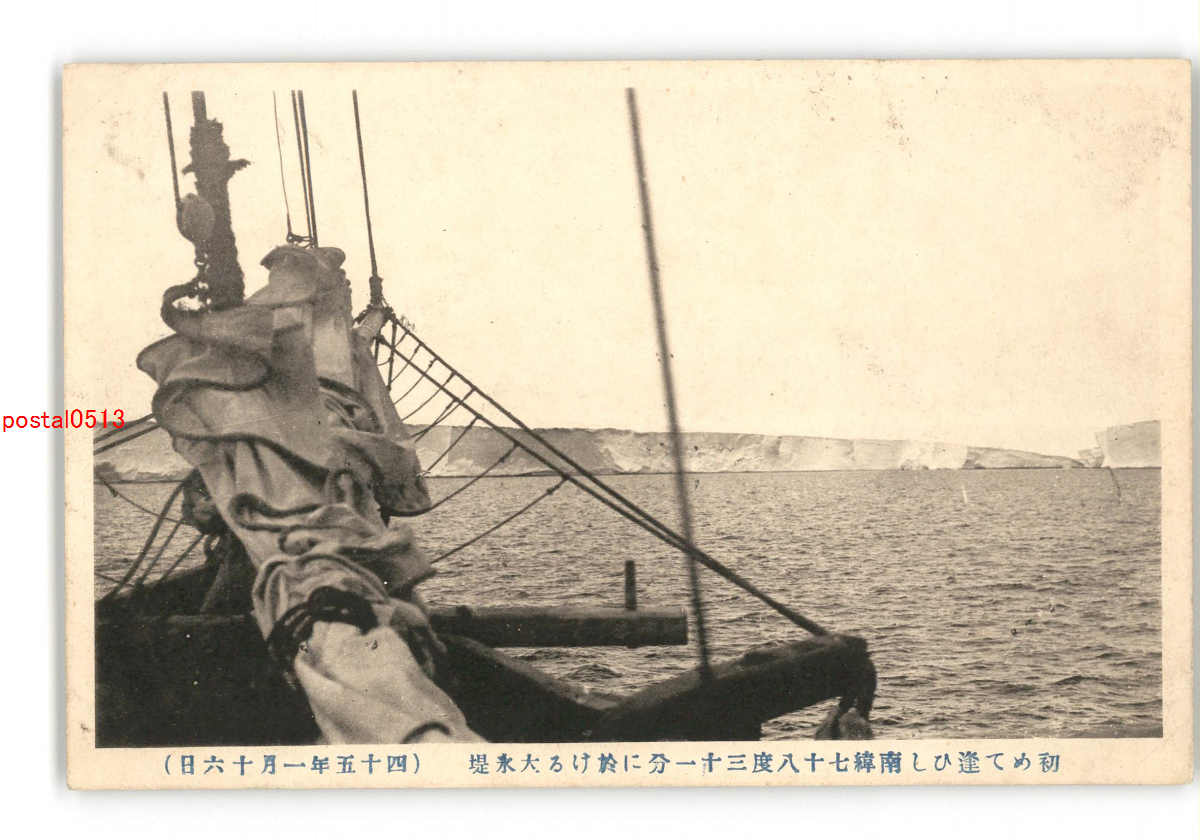 日本南極探検隊 初めて逢ひし南緯78度31分に於ける大氷堤 45年1月16日 *傷み有り