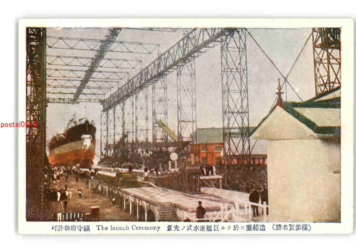 神奈川 横須賀名勝 造船台に於ける巨艦進水式の光景 *傷み有り