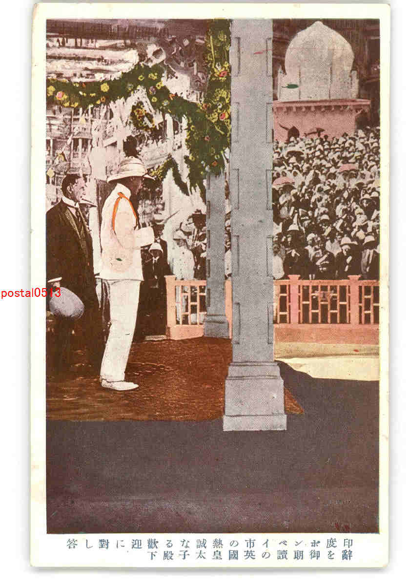 英国皇太子 印度ポンベイ市の熱誠なる歓迎に対し答辞を御朗読の英国皇太子殿下 *傷み有り