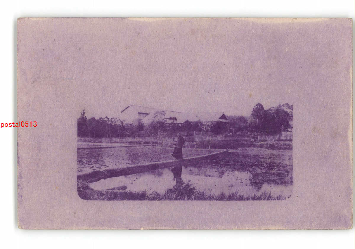 記念撮影絵葉書 田んぼのあぜ道? *傷み有り
