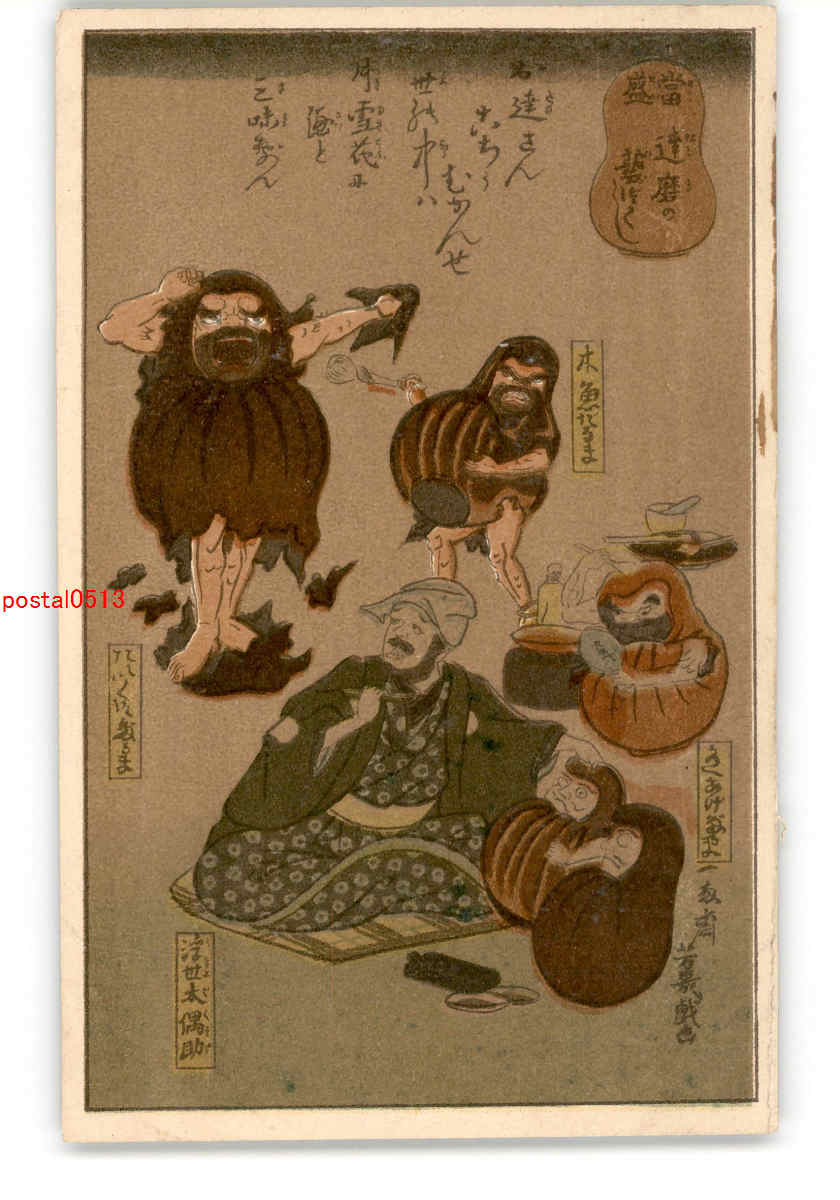 達磨 ダルマ アート絵葉書 *傷み有り