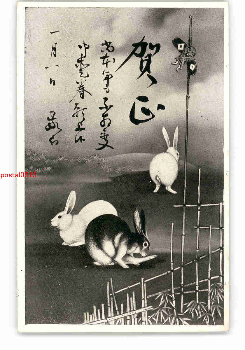 年賀状アート絵葉書 兎 *傷み有り