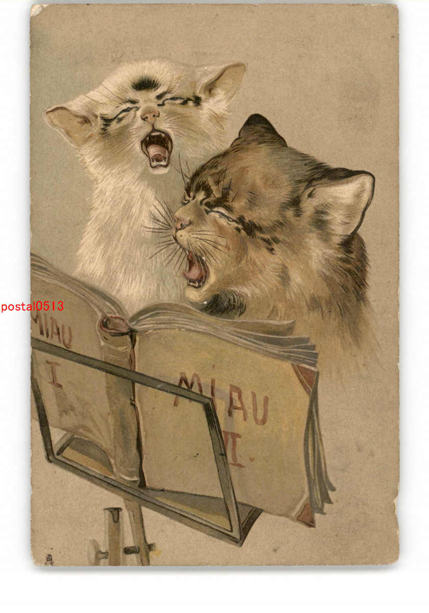 猫アート絵葉書 歌う猫 *傷み有り