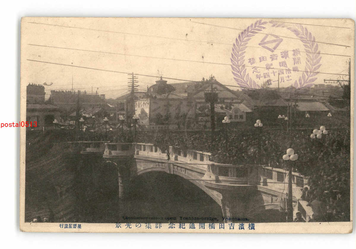 神奈川 横浜吉田橋開通紀念 群集の光景 *傷み有り