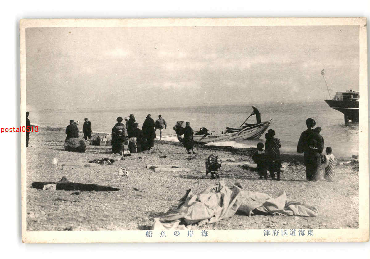 神奈川 東海道国府津 海岸の魚船 *傷み有り