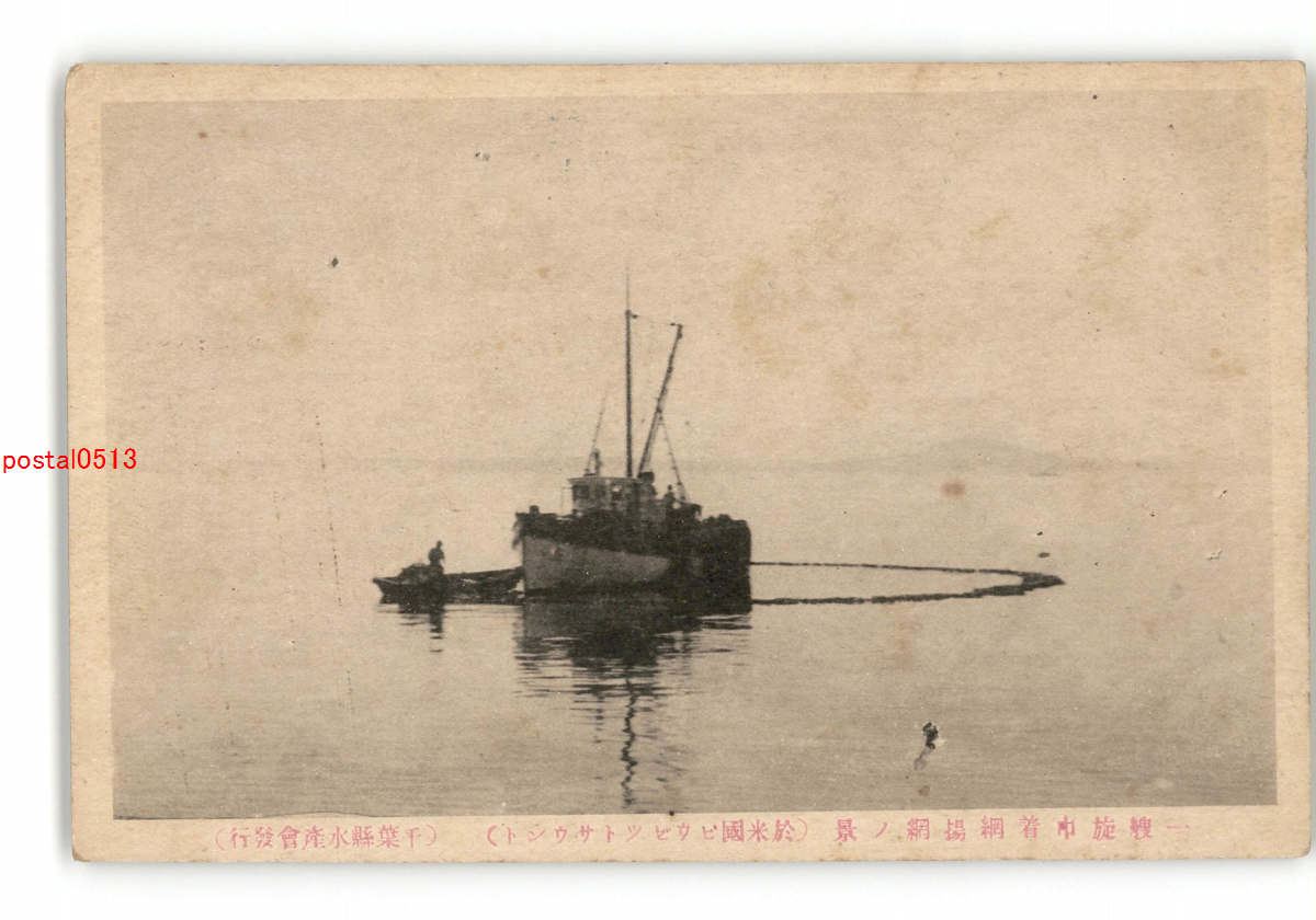 一宗艘艘施巾着網揚網の景 於米国ビウゼツトサウント 千葉県水産会発行 *傷み有り