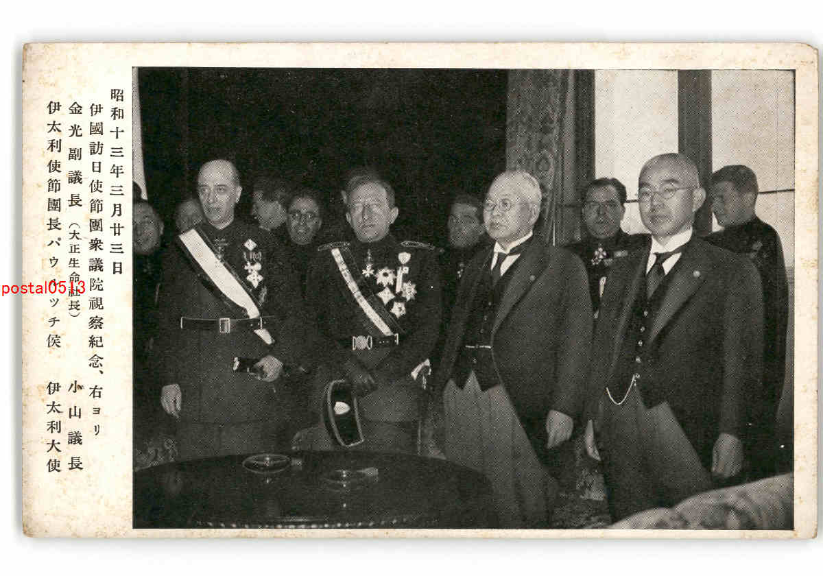 伊国訪日使節団衆議院視察紀念 昭和13年3月23日 *傷み有り