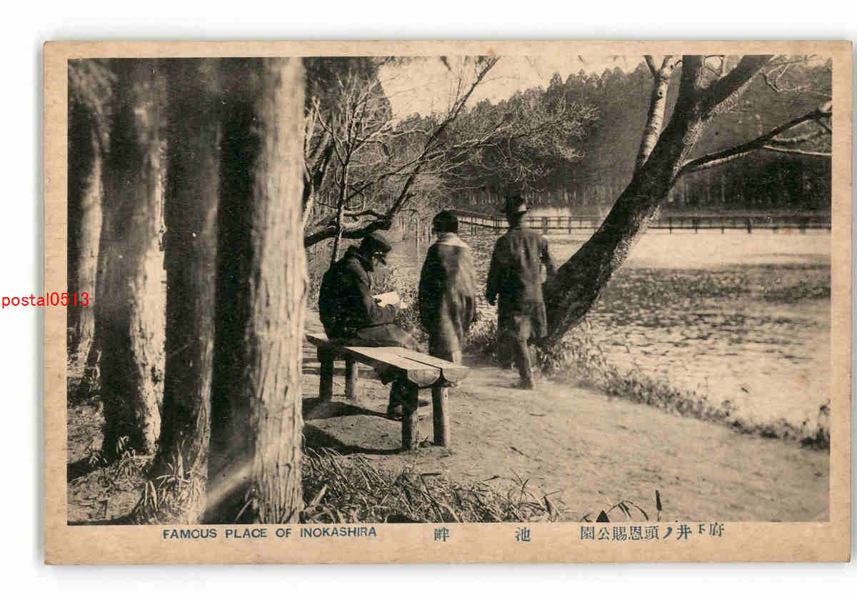 東京 井の頭公園 池 座って読書する男性 *傷み有り