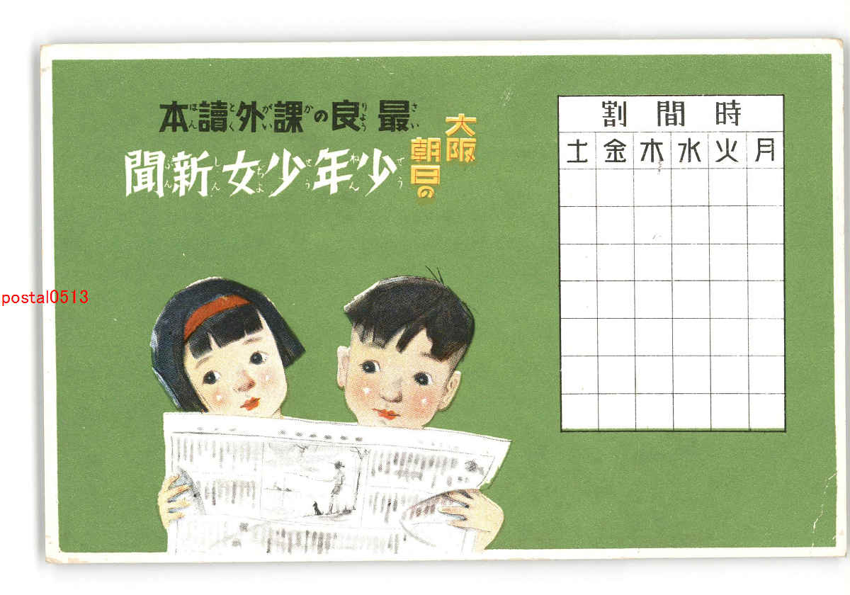 広告絵葉書 大阪朝日新聞社 少年少女新聞 *傷み有り