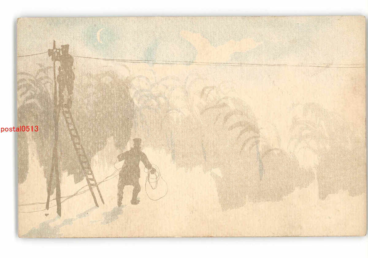 軍隊アート絵葉書 電話線架線の兵士 *傷み有り