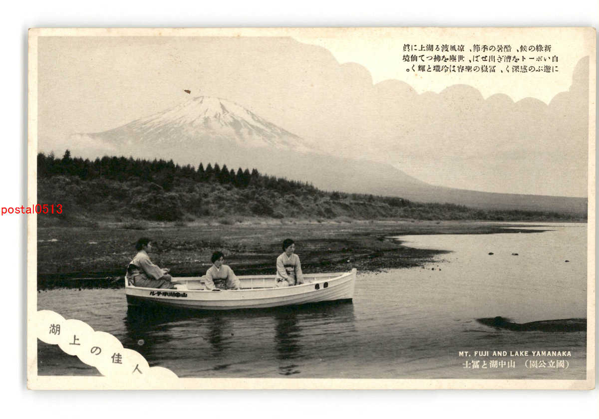 山中湖と富士山 ボートに乗る女性達 *傷み有り