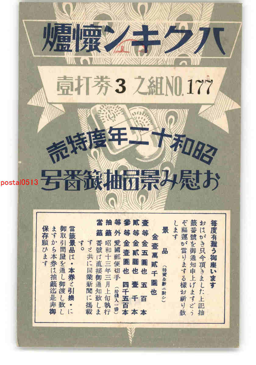 広告絵葉書 ハクキン懐炉 お慰み景品抽選番号 *傷み有り