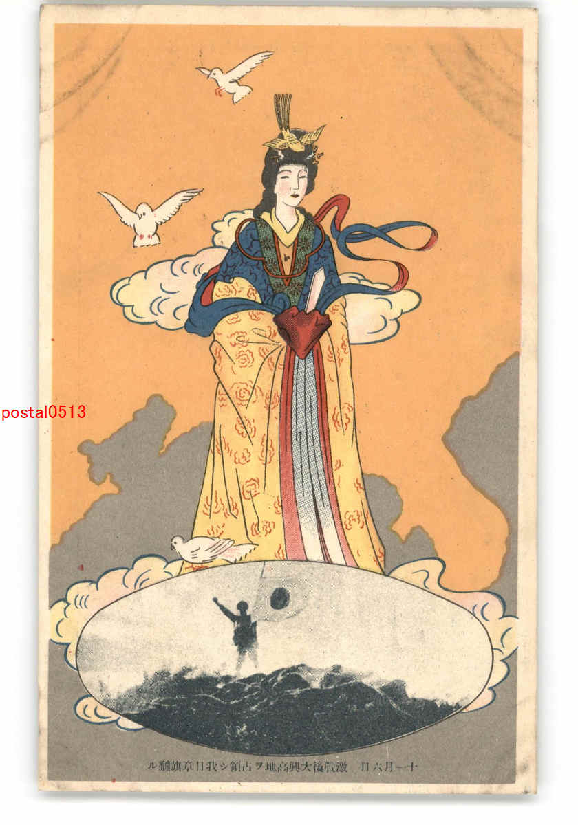 大興高地を占領し日章旗 女神?アート絵葉書 *傷み有り