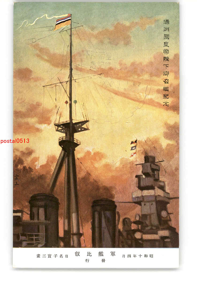 満州国皇帝陛下御召艦記念 軍艦比叡 アート絵葉書 *傷み有り