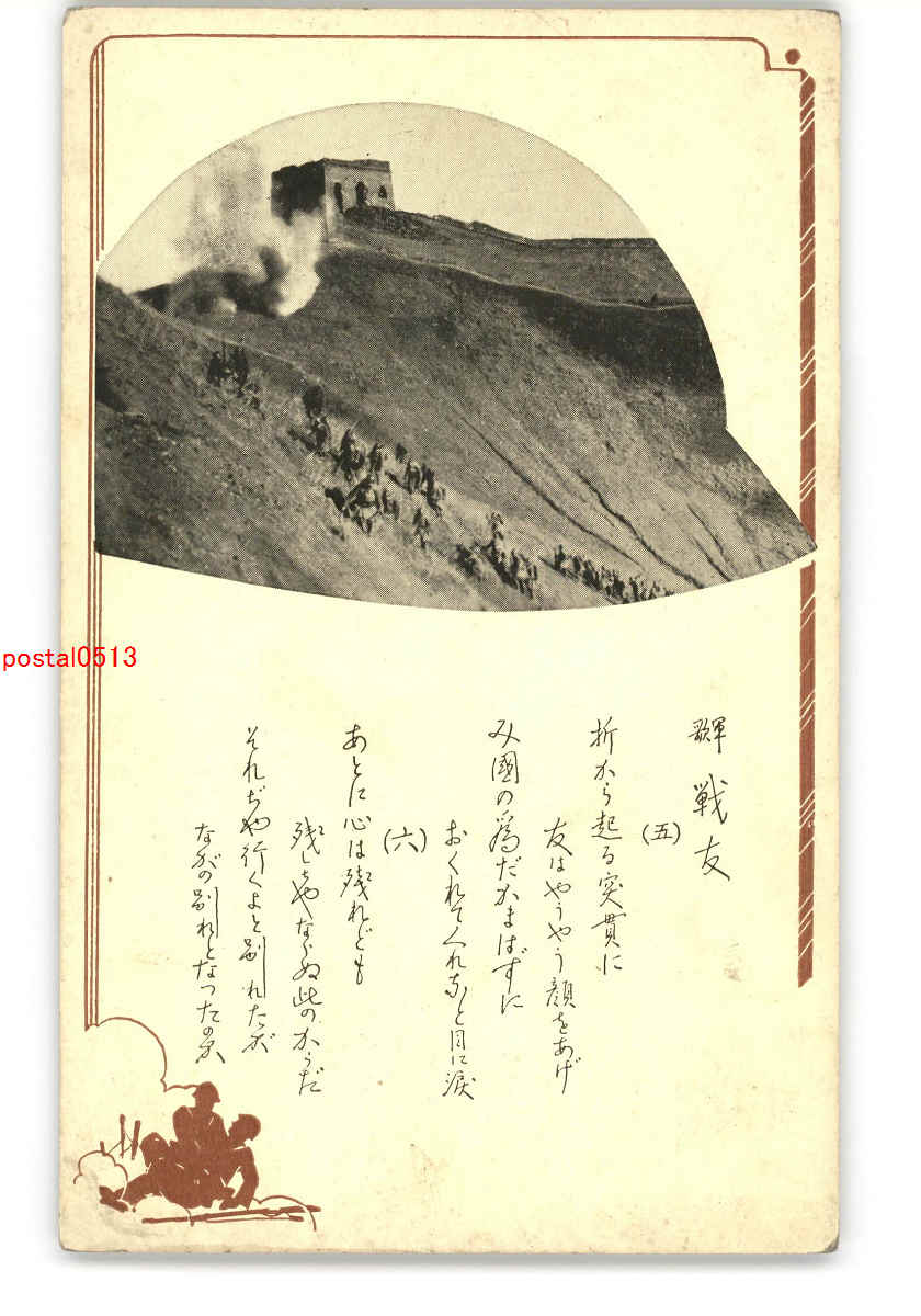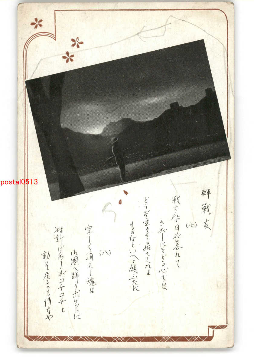 軍歌アート絵葉書 戦友 *傷み有り
