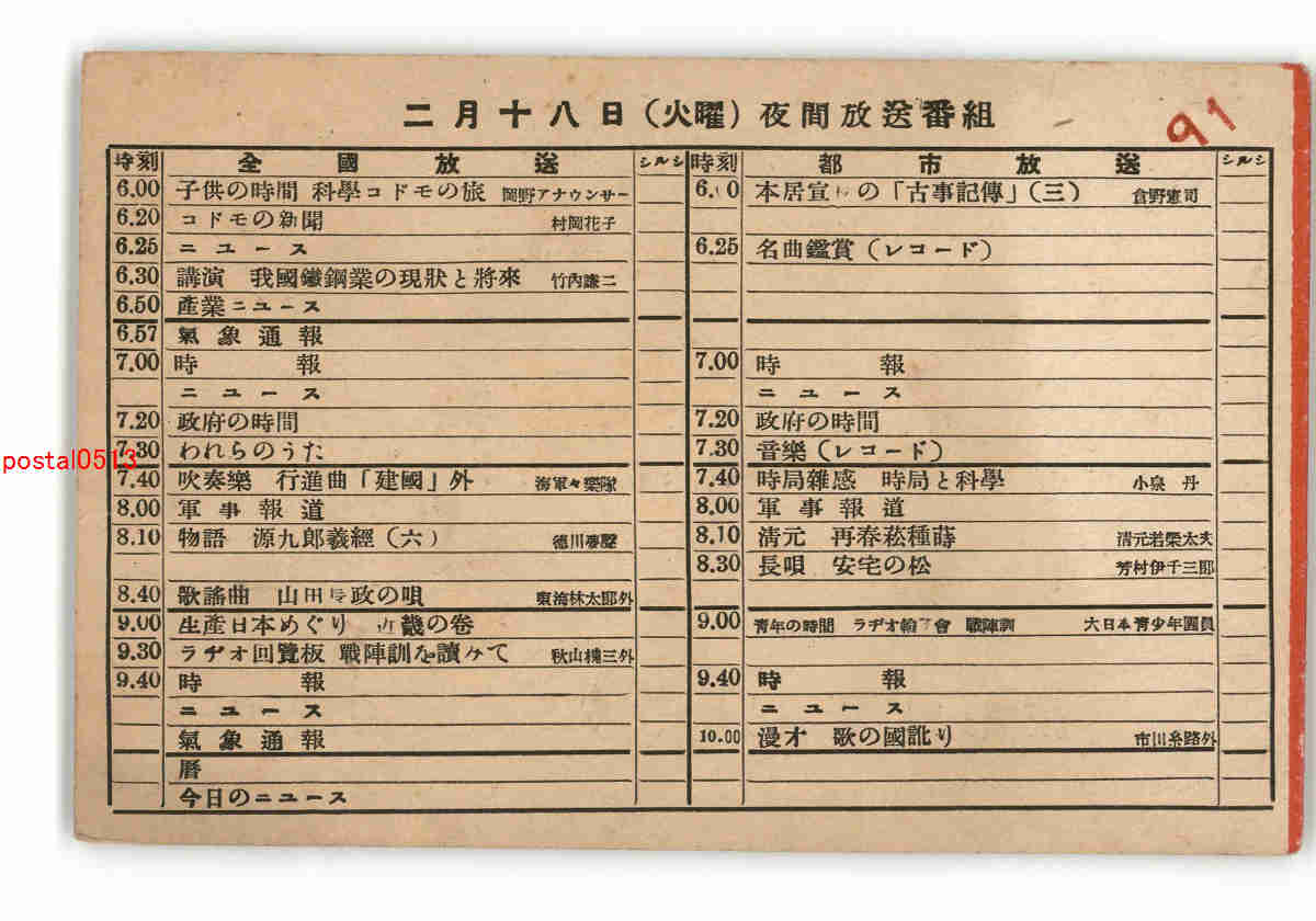 ラジオ番組表 二月十八日 *傷み有り