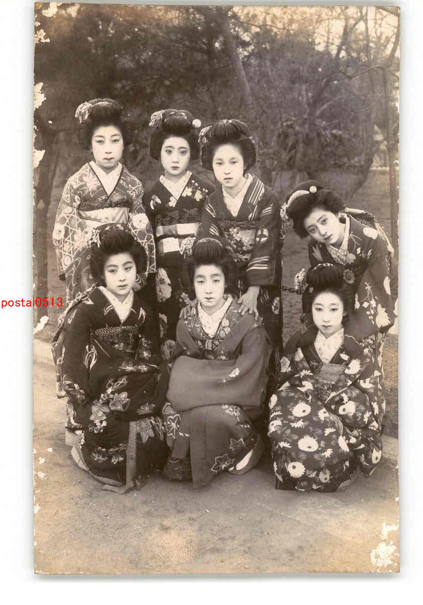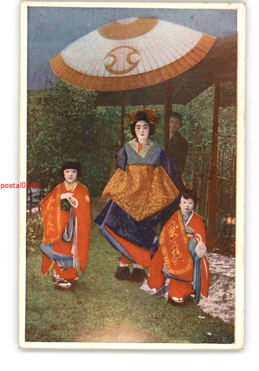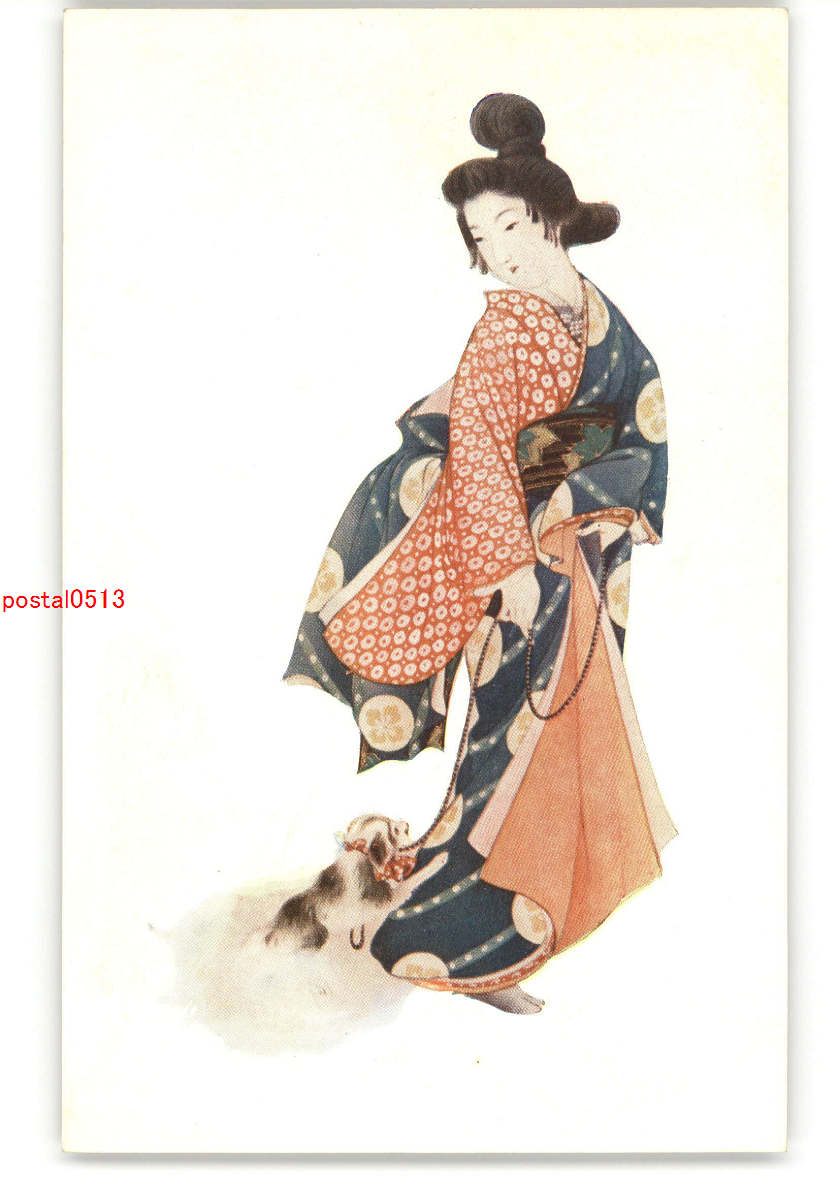 犬絵葉書 犬と和服美人 アート絵葉書 *傷み有り