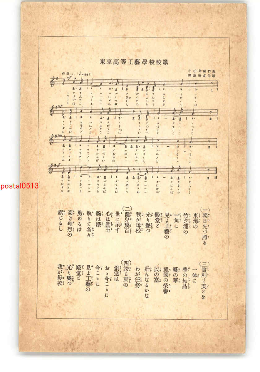 東京高等工芸学校 校歌 *傷み有り