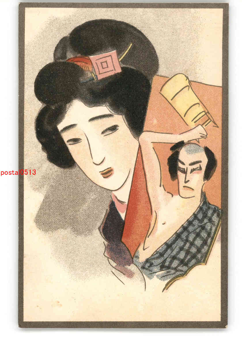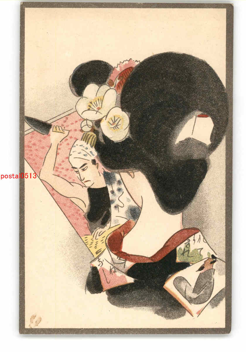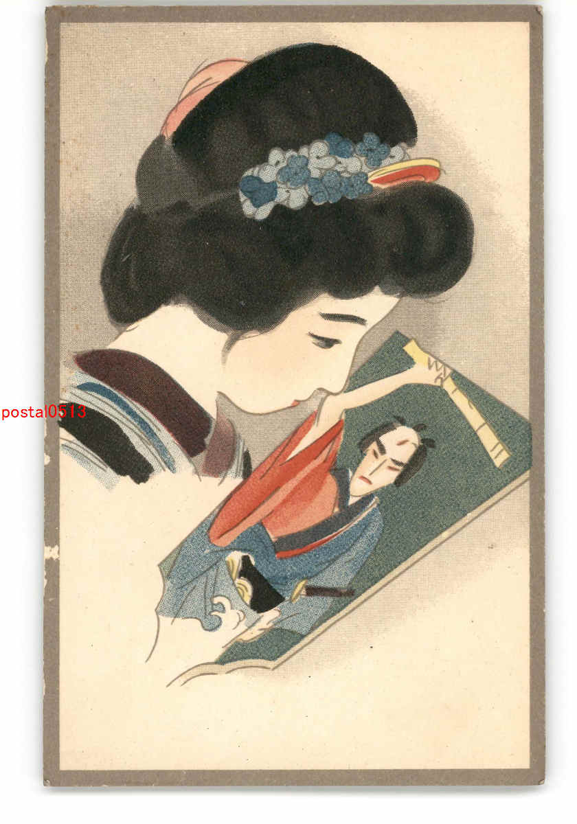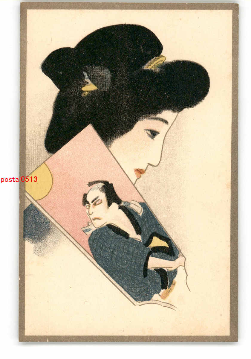 美人と役者羽子板 アート絵葉書 その9 *傷み有り