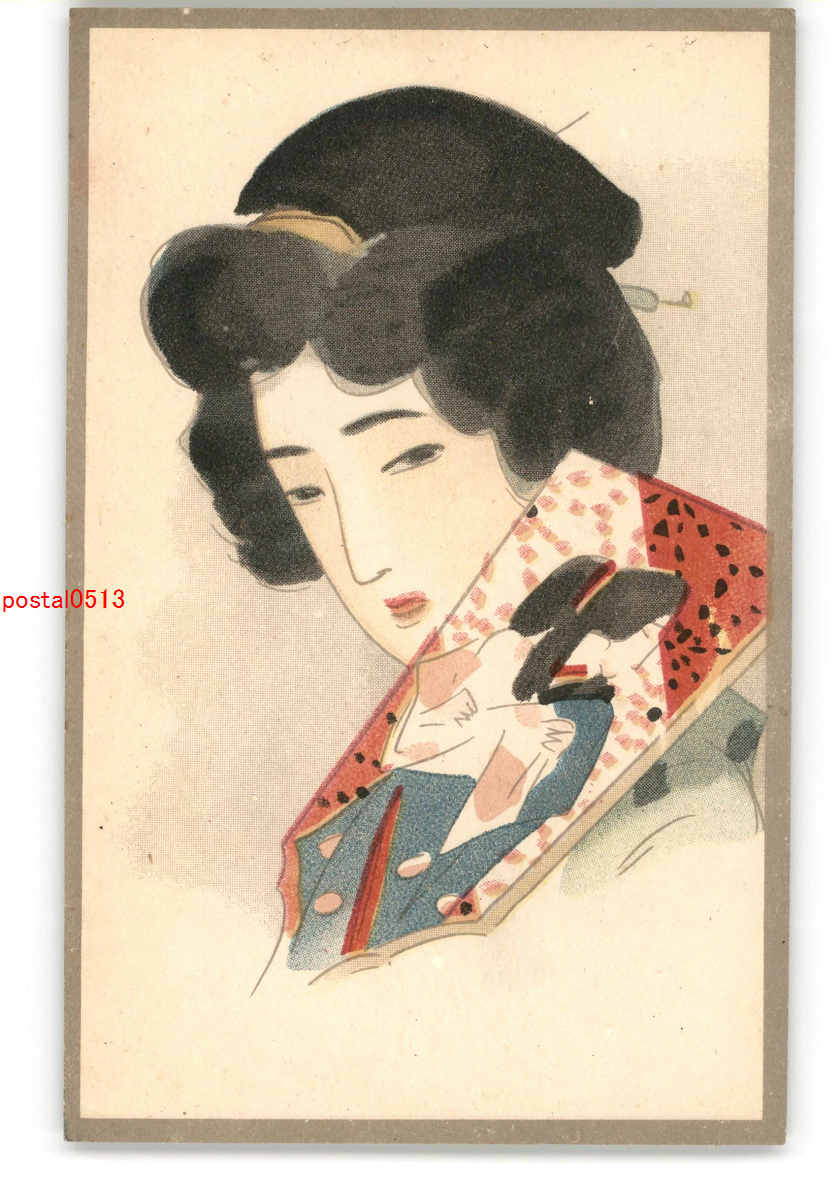 美人と役者羽子板 アート絵葉書 その7 *傷み有り