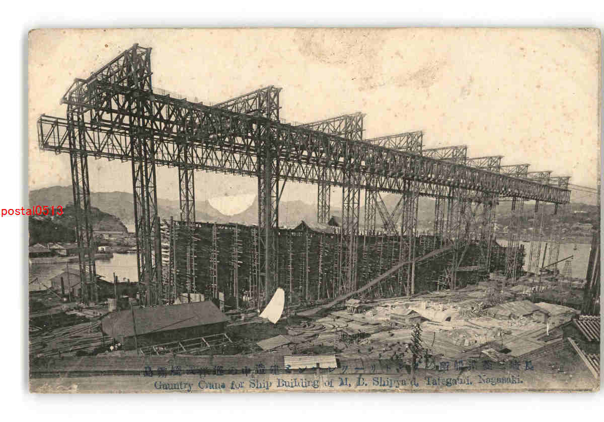 長崎 長崎三菱造船所のガントリークレーンと建造中の巡洋戦艦霧島 *エンタイア *傷み有り
